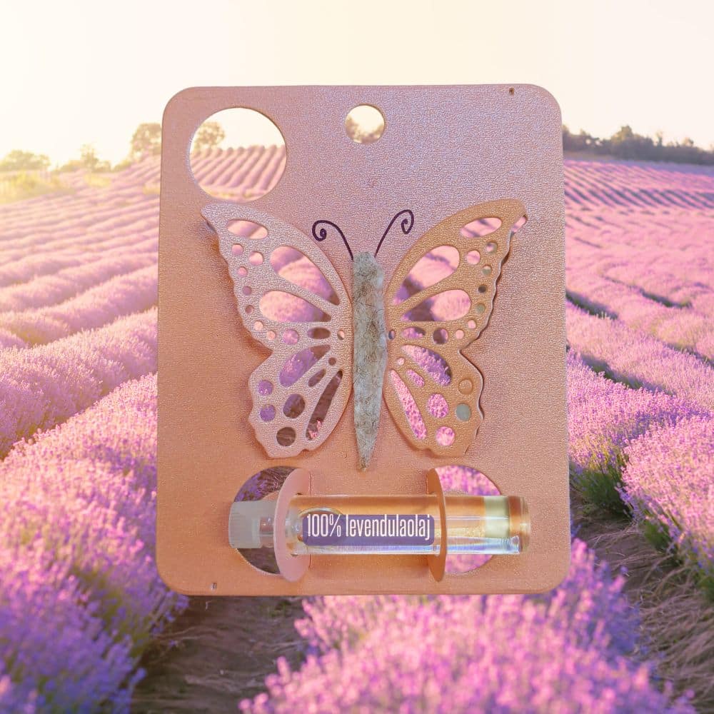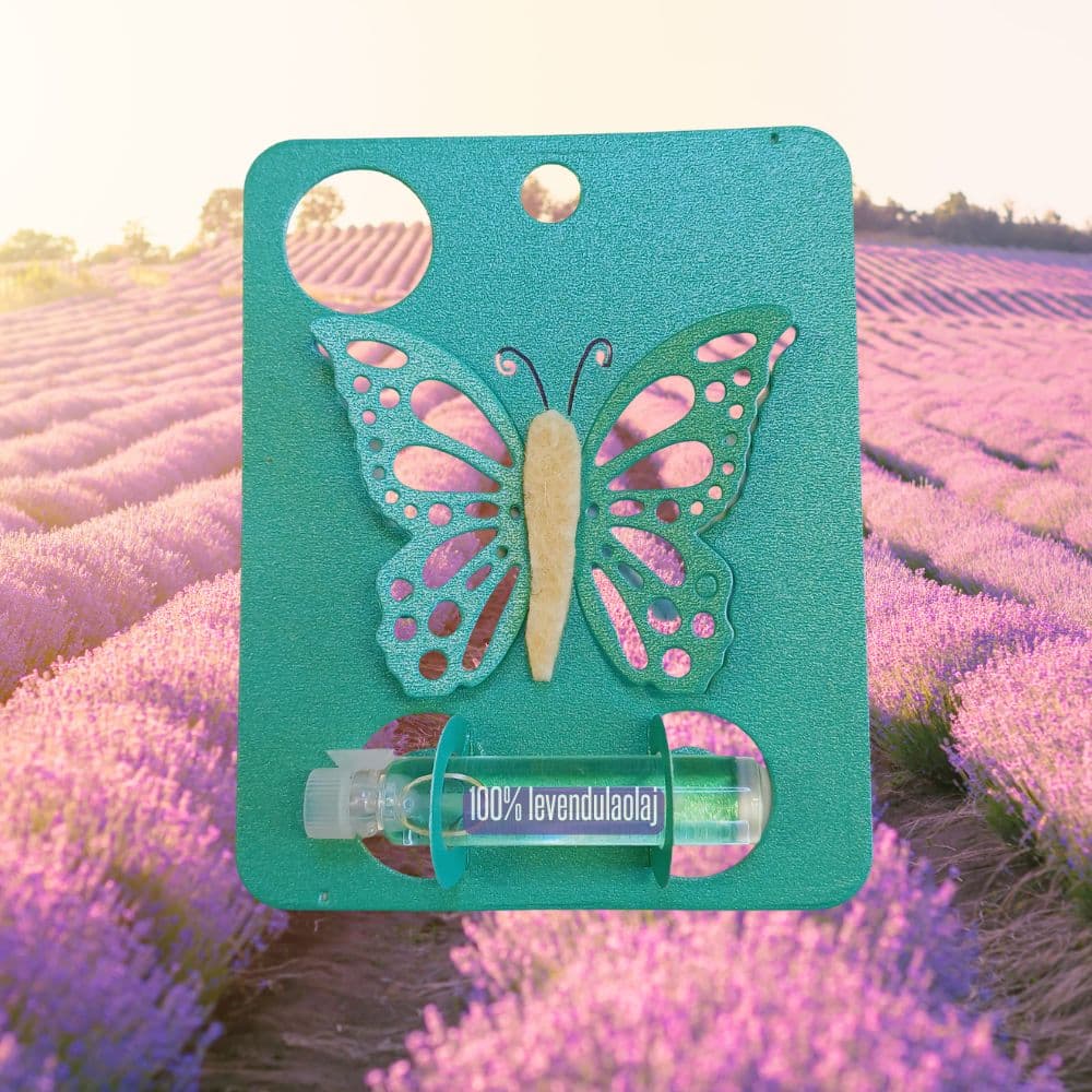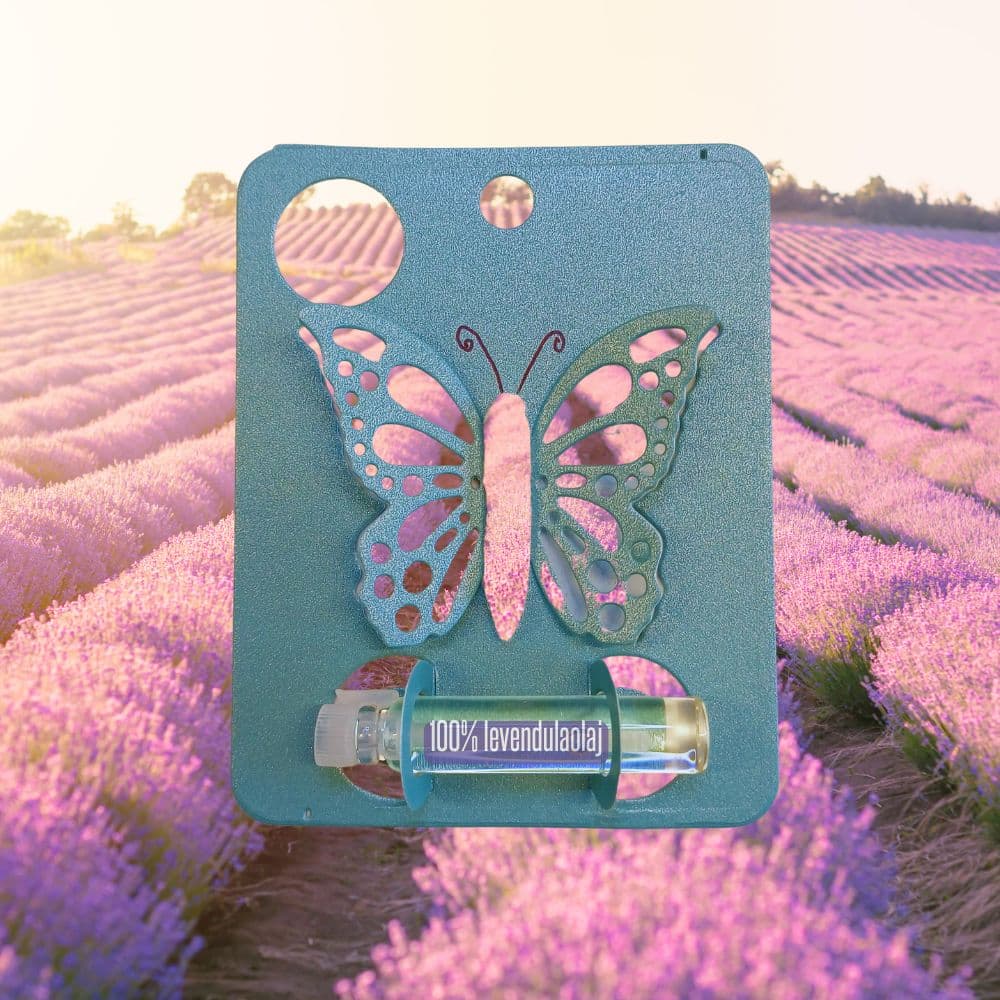 A csomag része egy 100% tisztaságú illóolajat tartalmazó fiola, melyből néhány csepp a filcre cseppenthető. A lávakő hosszú ideig megőrzi az illatot, így a pillangó tartósan és természetes módon illatosítja a teret, miközben az illóolaj jótékony hatásai finoman jutnak a levegőbe.