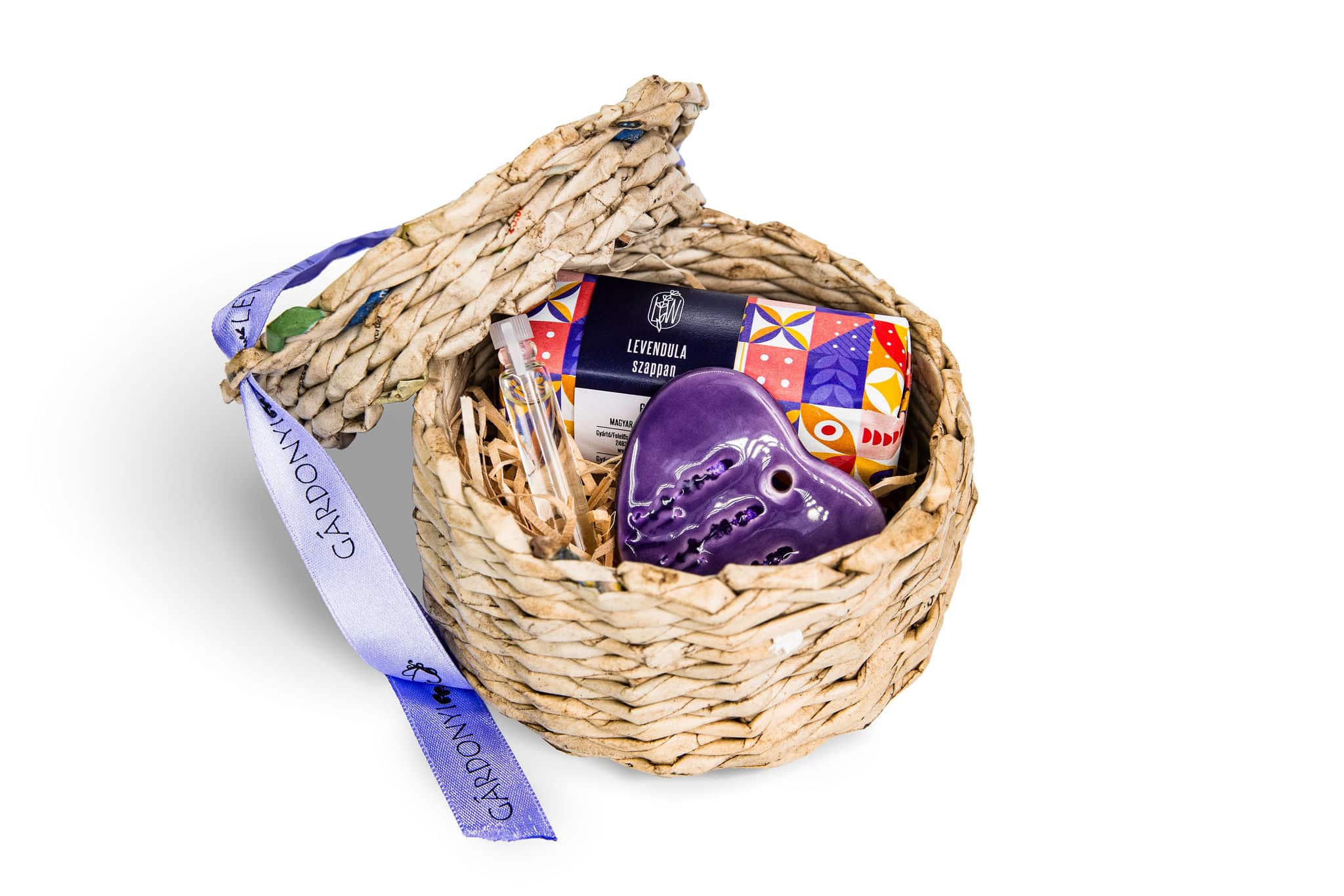 Mini ajándékcsomag fonott dobozban_levendulás